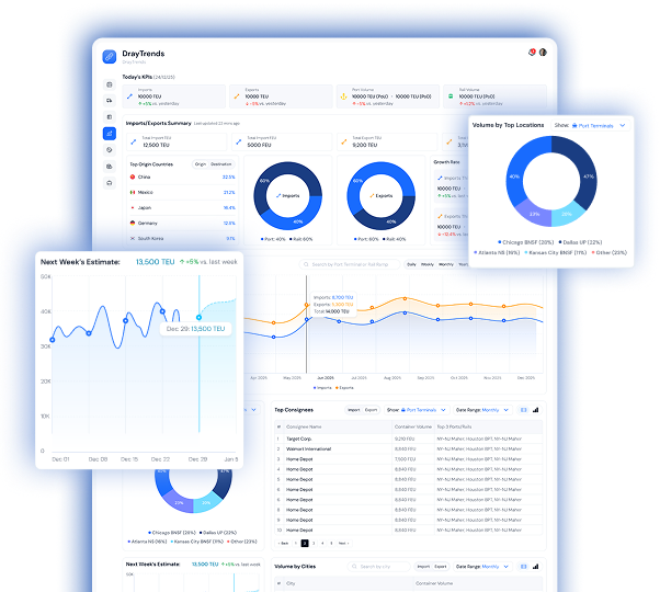 DraySearch gives you access to over 600,000 verified shippers, consignees and importers—complete with port activity, lane data, and historical container movement.